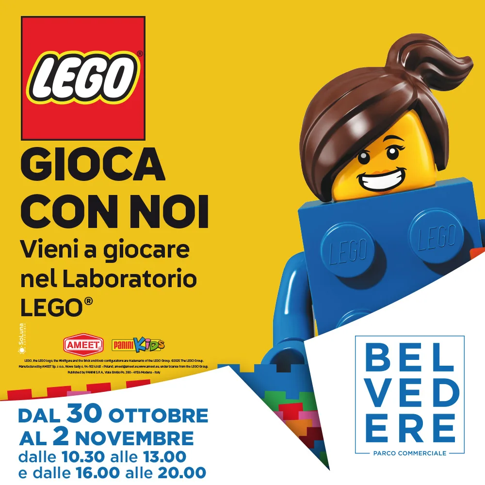 Dal 30 ottobre al 2 novembre ti aspettiamo al Parco Commerciale Belvedere con il Laboratorio LEGO® e con i magazine